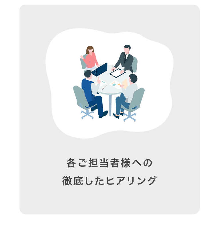 会話をしながら、御社の課題を把握し、考え方をご説明させていただきます。